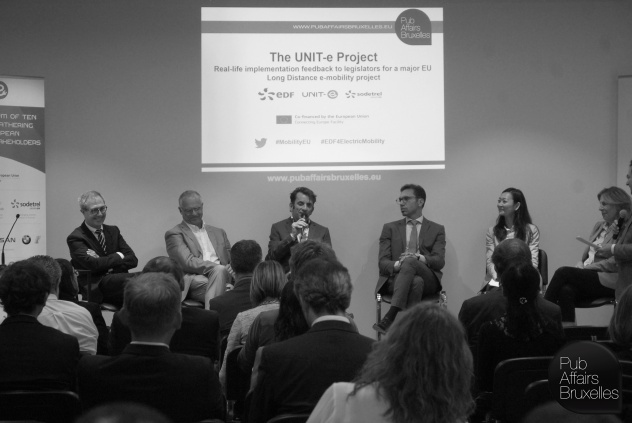 PubAffairs Bruxelles was delighted to host on the 26th of June the afternoon of discussions on “The project UNIT-e: real-life implementation feedback to legislators for a major EU Long Distance e-mobility project”, with our distinguished speakers Richard Ferrer, Senior Project Manager, Innovation and Networks Executive Agency (INEA), European Commission, Patrick Gagnol, Electric Mobility Project Manager, EDF, Odile Garçon, Project Director, Electrical Vehicle Program, Infrastructures & Connected Services, Renault, Kiyoko Kurabayashi, Section manager External Affairs – Funding & Collaborations, Nissan, Dr. Abayomi Otubushin, Corporate and Governmental Affairs, Representative Office Brussels, BMW Group, Lucas Malacarne, Project Manager EM, Sodetrel, Geert Leppens, Customer Experience Manager, EDF Luminus, Andrea Trebiani, Business Development Manager, ABB, Pier Giuseppe Naso Rappis, General Secretary, IIC Istituto Internazionale delle Comunicazioni, Gilles Crague and Anne Guillemot, Researchers, École des Ponts ParisTech, Gilles Bernard, President AFIREV Association Française pour L’itinérance de la Recharge Électrique des Véhicules, Eric van Voorden, Chief Executive Officer, Last Mile Solutions, and Sergio Torre Business Development Director at Duferco Energia S.p.A.